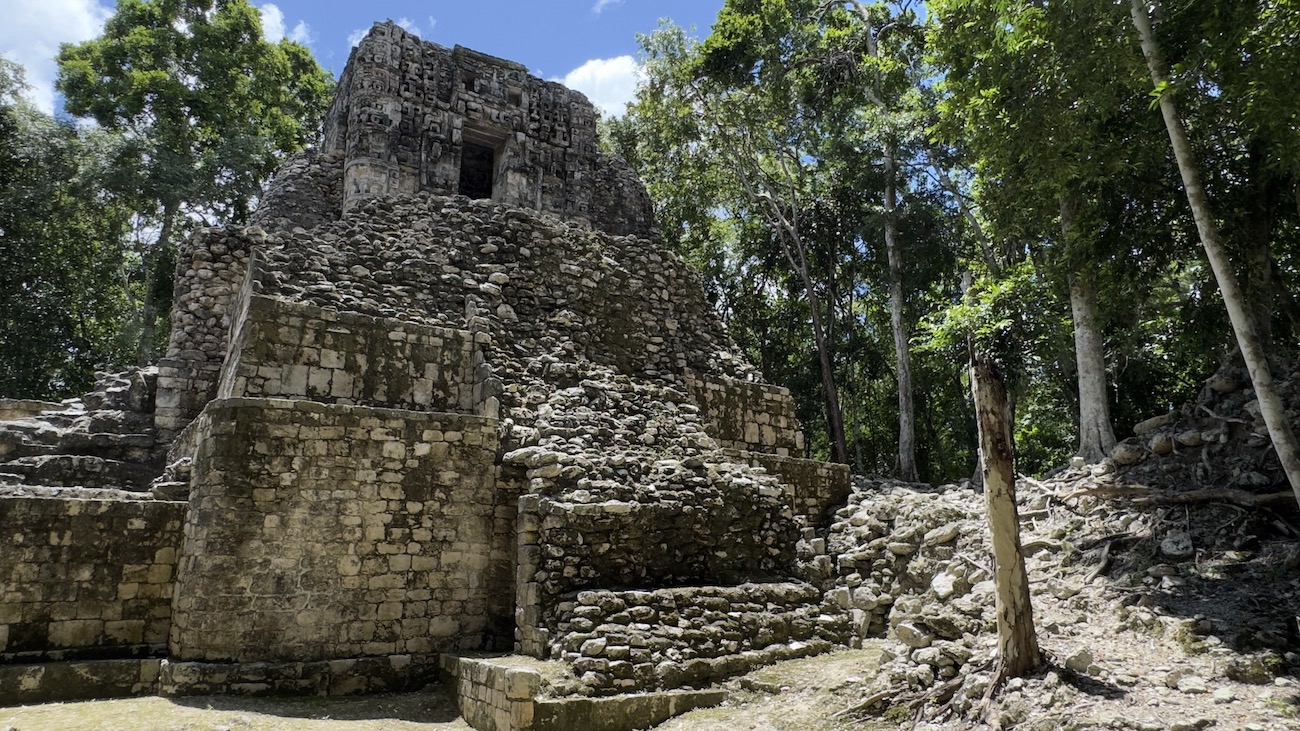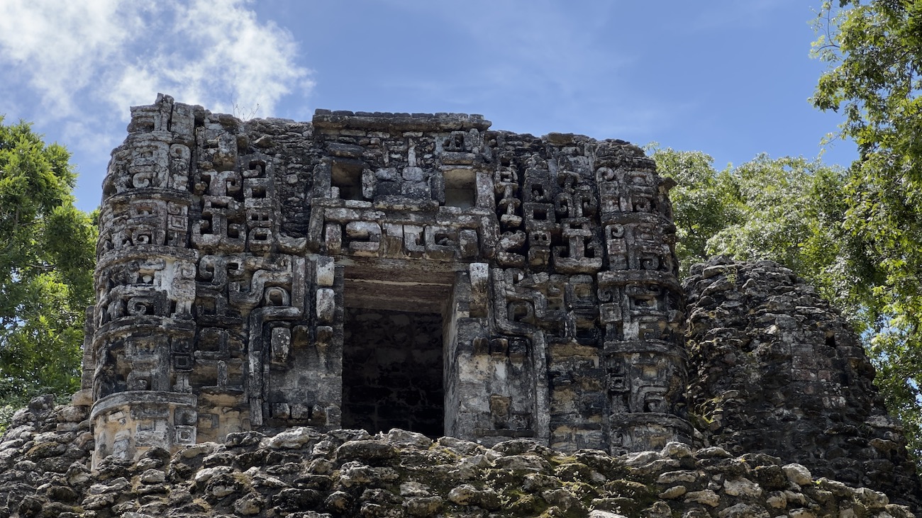 Esta antigua ciudad maya sorprende con sus edificios aún en pie. De entre ellos destaca el nombrado como Estructura II, un estilizado y monumental edificio que su fachada hace referencia a las fauces de un monstruo, y a su vez es entrada al inframundo. La decoración de esta estructura es muestra de la complejidad del pensamiento maya que intercala soluciones arquitectónicas con simbologías de deidades como Chaac, dios del agua.